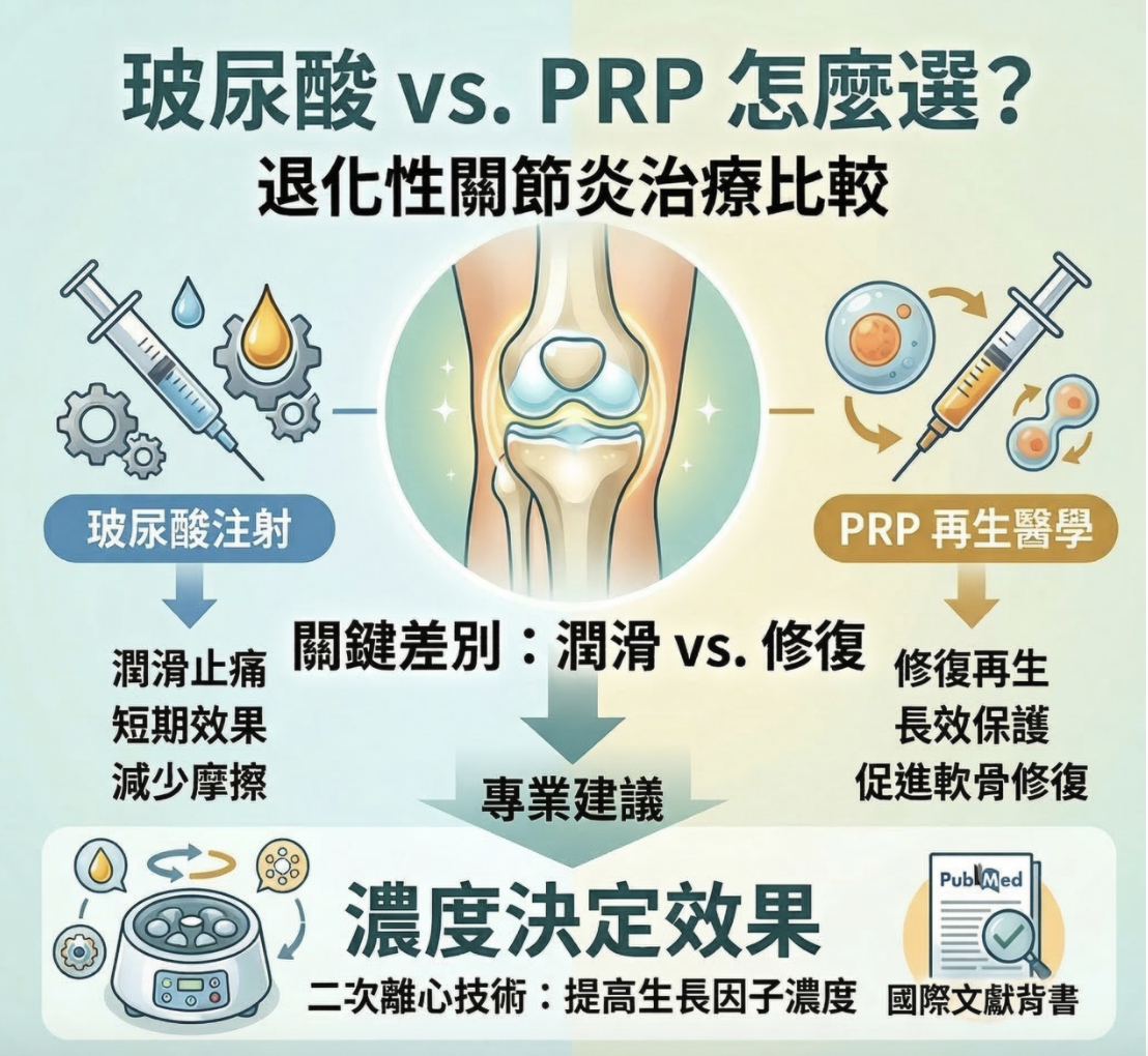 玻尿酸 vs. PRP 怎麼選?退化性關節炎治療完整比較:哪種更有感?維持更久?