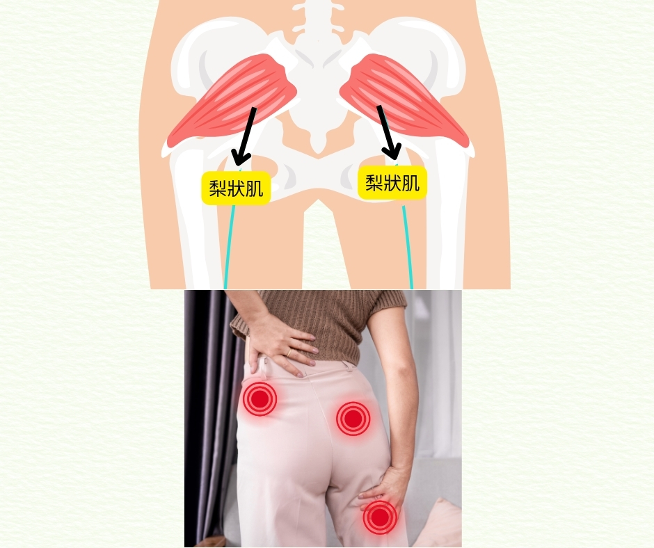 • 臀部深層痛,合併坐骨神經痛(大腿後側到小腿),有時會轉移到下背或鼠蹊部。